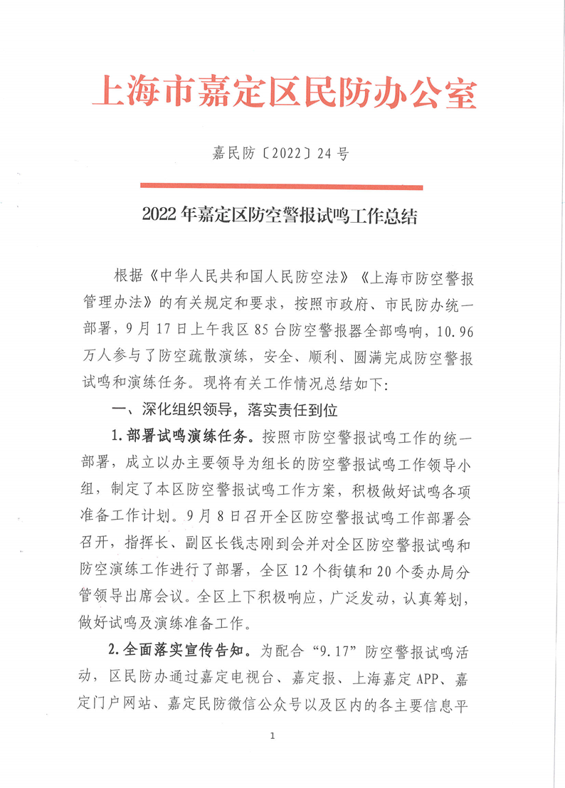 2022年嘉定区防空警报试鸣工作总结