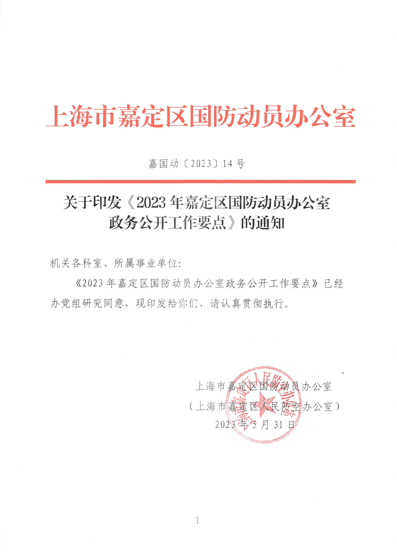 关于印发《2023年嘉定区国防动员办公室政务公开工作要点》的通知
