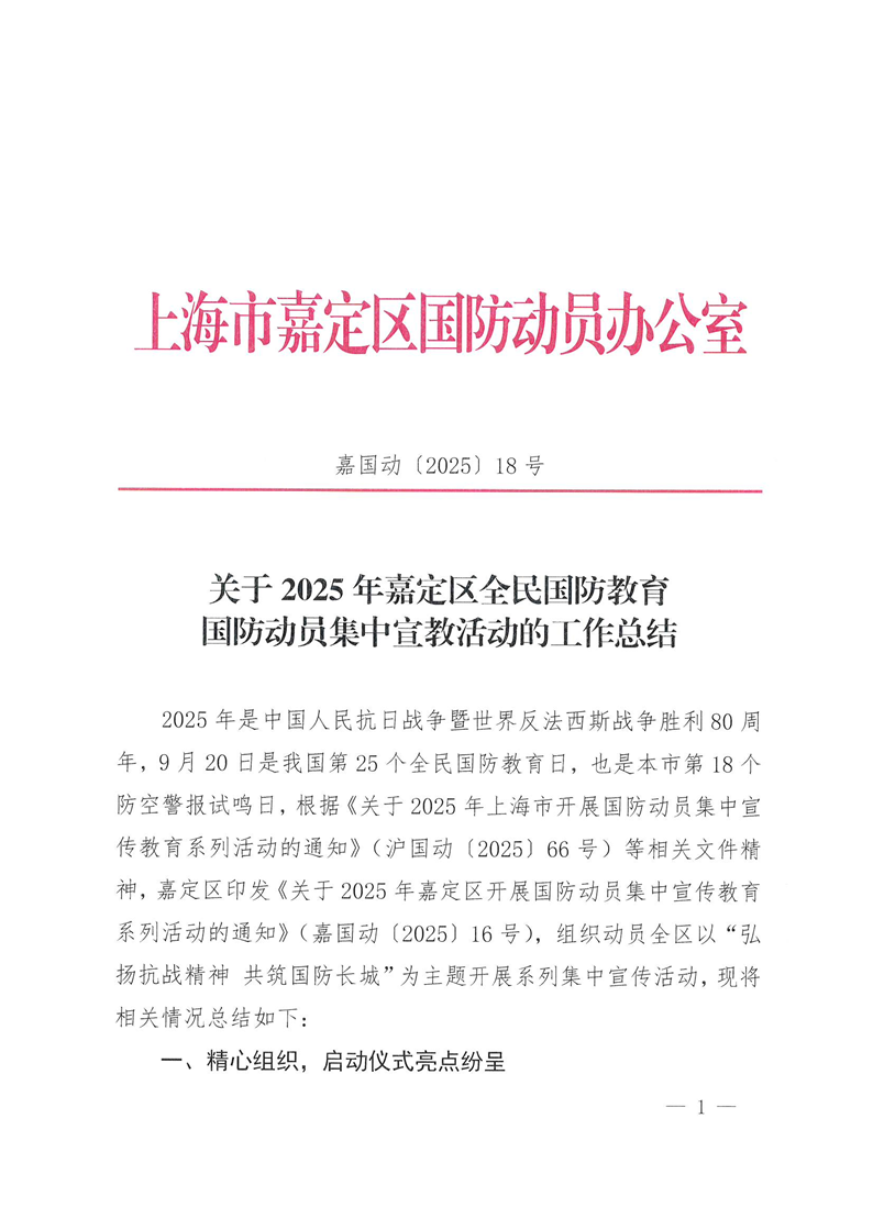 上海市嘉定区国防动员办公室 2025年10月9日印发 |